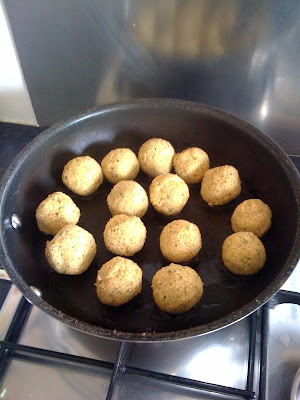 All you need to do is add water to the mix, leave to rest for 15 minutes and then make into felafel balls. The pack suggests using either your hands or 2 teaspoons to shape them but actually I quite enjoyed getting my hands in there and rolling them into shape!