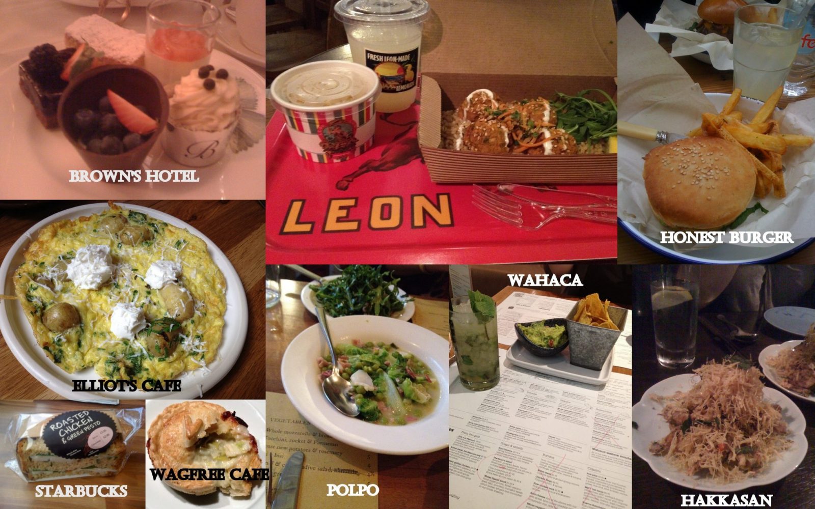 Eliot’s Cafe – If you are into food markets, this cool little restaurant with a daily changing menu is perfectly situated for Borough market. I booked a table for Saturday brunch (of delicious leek, goat’s cheese and Jersey Royal frittata) here via OpenDining with a note on my dietary restrictions. I was extremely impressed they called me back within 10 minutes to confirm they could safely cater for me. Check their website for opening times. ££