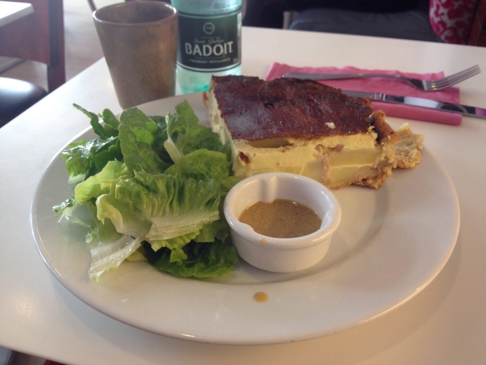 I chose the potato and lardon quiche. It came served with a green salad. Just leaves with a simple dressing. It seems so rare to be served just salad leaves with a meal anywhere other than in France.