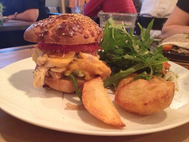 For main I chose the chicken burger. I was really impressed with the quality and non flakiness of the burger bun. The chicken burger wasn’t entirely what is expected, the burger was made of pieces of chicken rather than minced chicken made into a burger patty. But nonetheless tasty an I enjoyed it. N chose the sea bass fillet for her main.