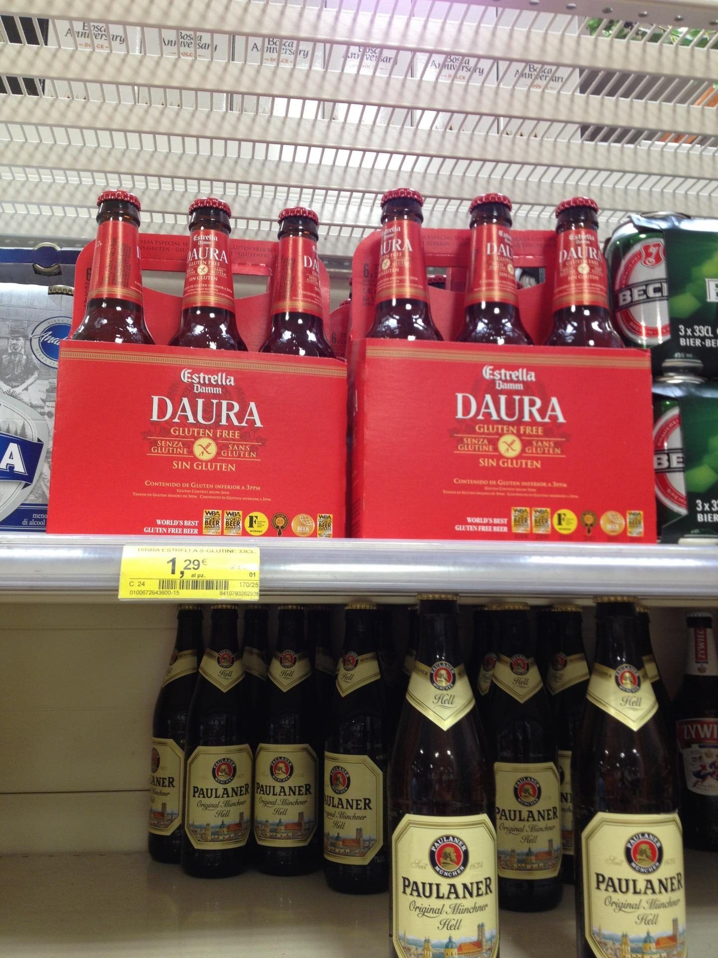 - Gluten free beer can be found in most supermarkets, even smaller ones in town centres. It’s usually found in with the regular beers. The beers I’ve most often found are gluten free Daura and Peroni.